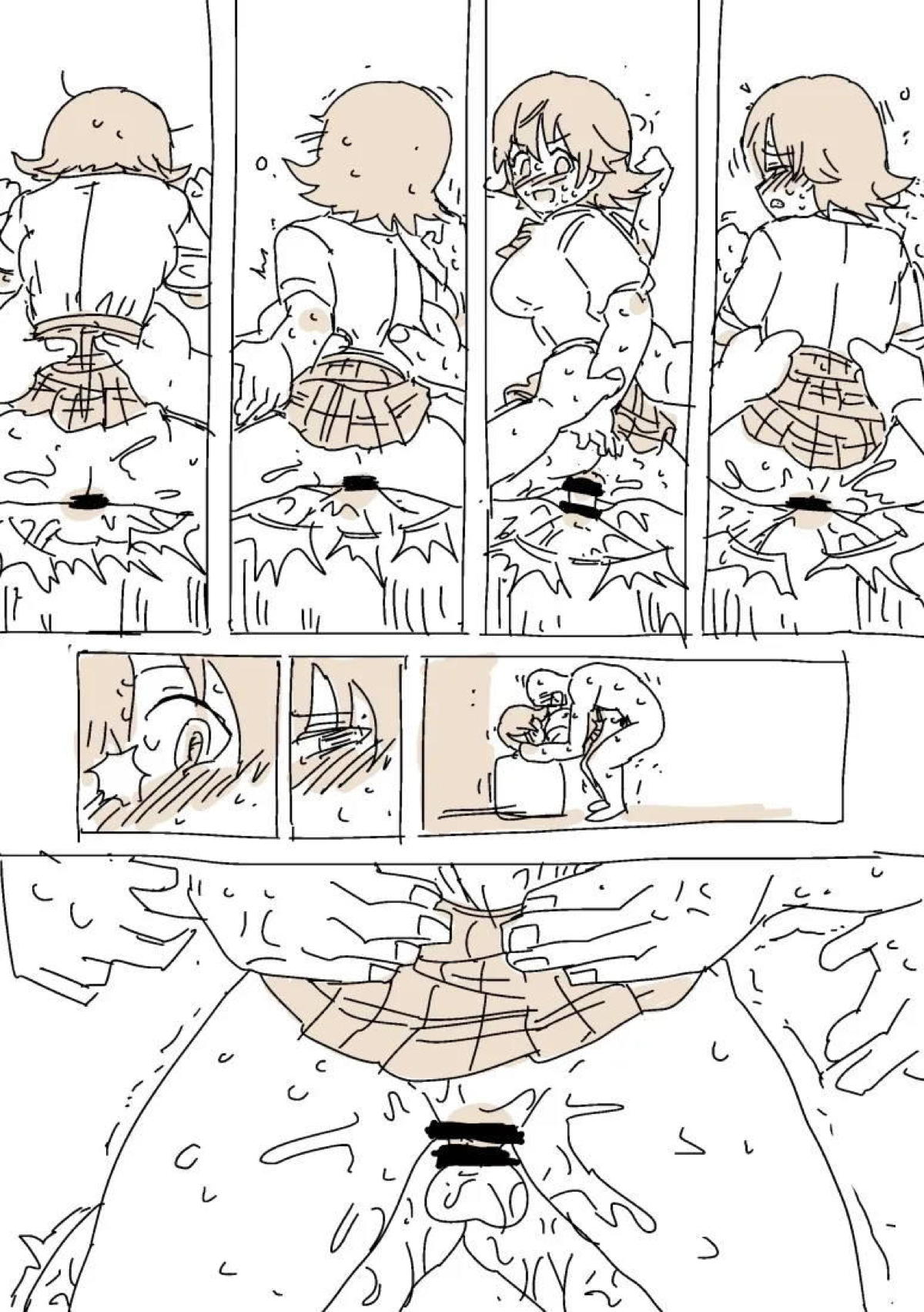 しぶりん優位ハート目騎乗位射精差分付きモノクロイラスト